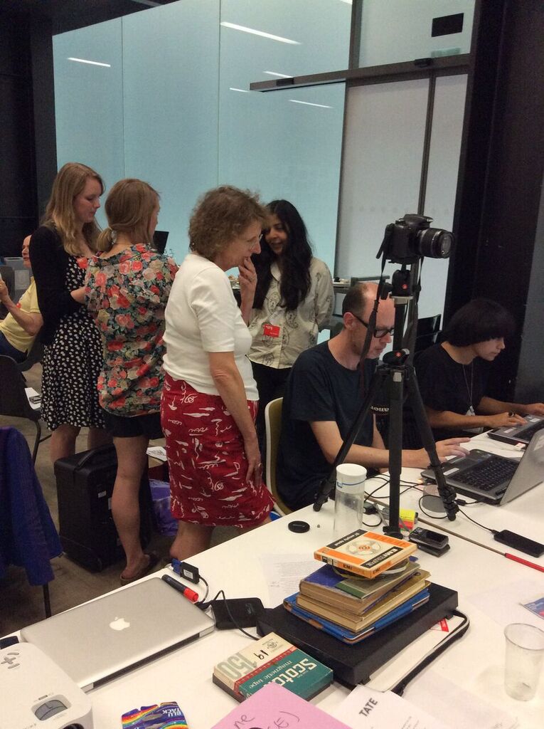 We began to work on an archive related to the summer school. First of all, in the same group of five as the morning, we had a brief discussion about the possibilities of and for archiving. We came up with some parameters for a collective Summer School archive. There is, we were told, a possibility that the school could actually be archived at Tate in some way, so this is not simply a make-believe exercise. Barby and Teresa are documenting the archiving process so we assume that this will also contribute to the overall archive we are making – and indeed being.