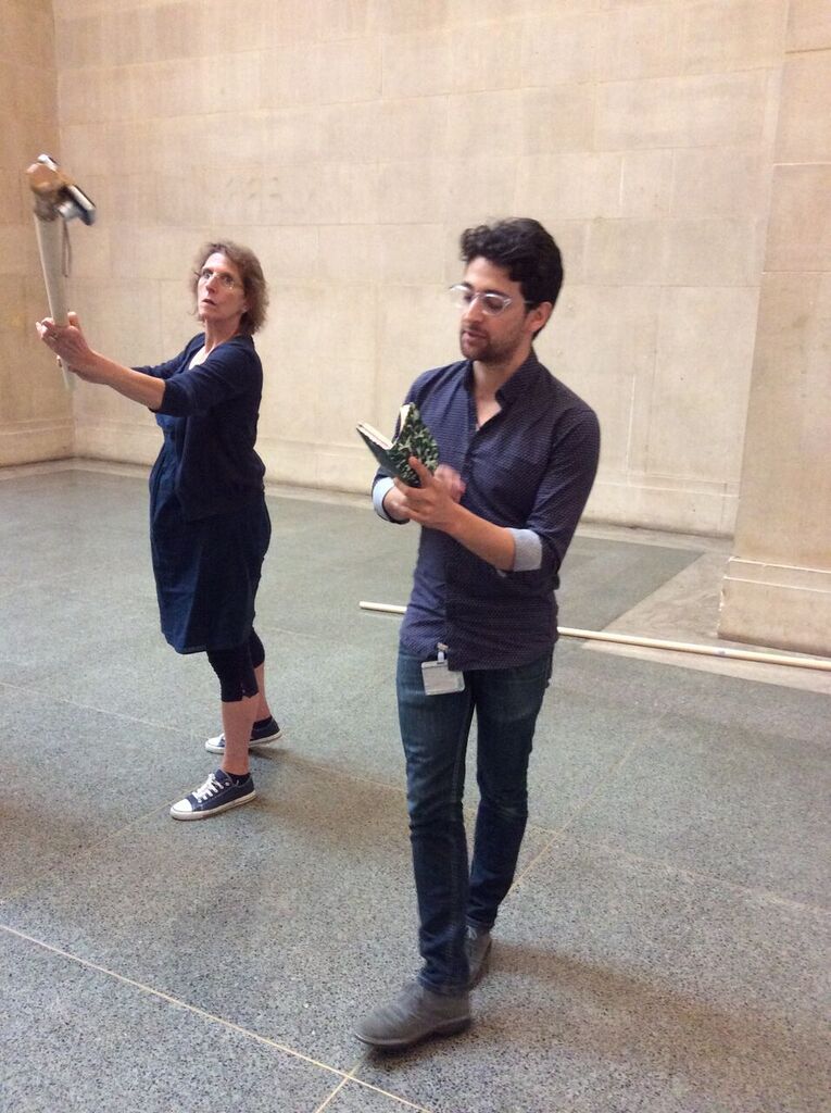 Felipe then showed us a flock of birds – a murmuration – in which the birds move together, leaderless, but as one. We were invited to tape video cameras to long sticks and then to go into the large hall at Tate Britain to practice moving about as a flock, while also videoing our actions from above.
