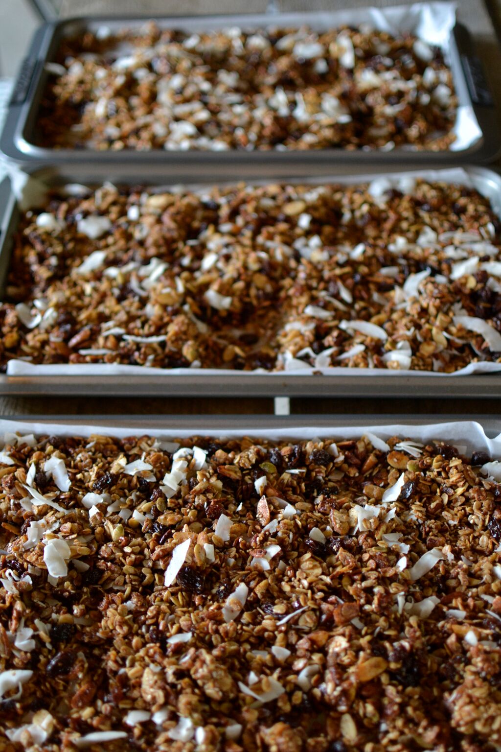 It was when Molly O’Neill told me that I was going to have to re-dry roughly 30 pounds of granola a second time, that I seriously questioned my decision to spend the summer cooking at cookNscribble. I’d already had to dry this batch of granola twice. What had happened to it that it was now damp again? Part of me wanted to curl up on the floor in tears at the thought. Most of me wondered how I had ended up here, in upstate New York, worrying about whether granola was crisp, crunchy and dry.