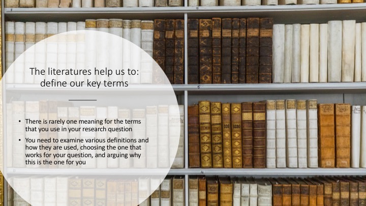 What terms in your research question or hypothesis need clarification? Where do you stand in relation to the ways these terms have been used in the literatures you have read? Why?
